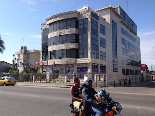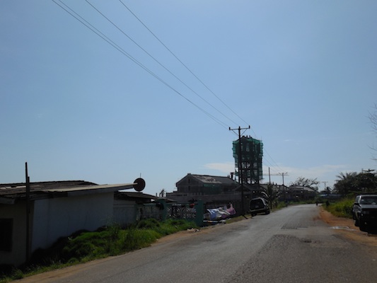 Congo Town Back Road. Not sure what the Chinese are building here, but it looks lie some sort of tower.